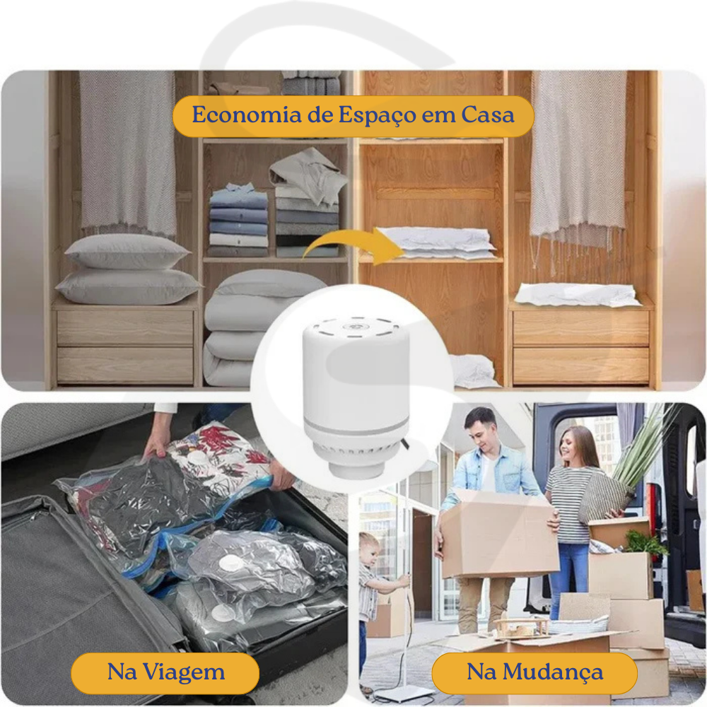 Com o EasyVac, de forma fácil e rápida, você diminue o volume de suas roupas, travesseiros, cobertas e etc. Sem danificar e mantendo totalmente seco e protegido.